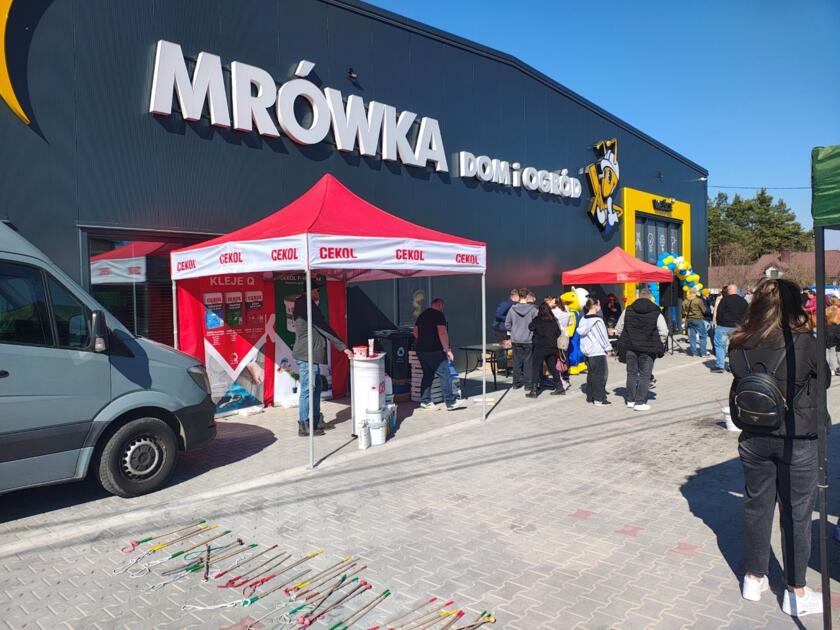 Otwarcie poprzedzone było kampanią reklamową w postaci gazetek promocyjnych, reklamą w radio lokalnym i na Facebooku. W dniu otwarcia mieszkańcy licznie odwiedzili nową Mrówkę i chętnie robili zakupy. Na wszystkich czekał grill, na najmłodszych bawialnia z piłkami w autobusie oraz wiele konkursów z nagrodami dla dzieci i dorosłych. Za zakupy klienci dostawali ciekawe nagrody.