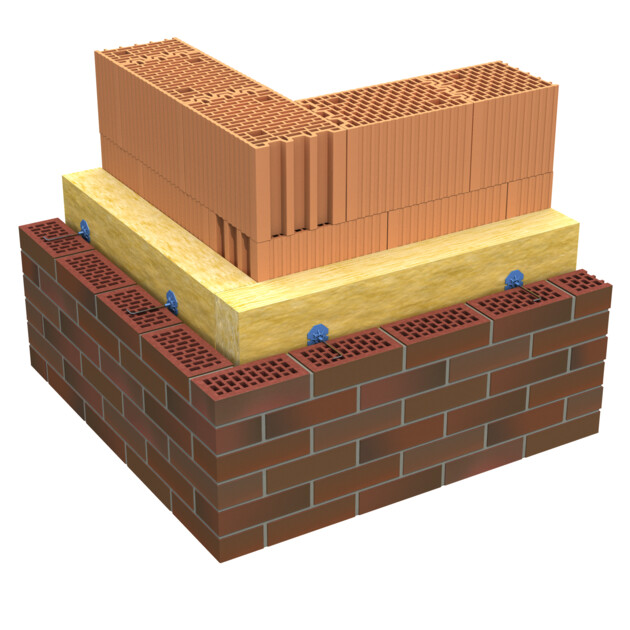 Poszczególne warstwy łączy się stalowymi kotwami z nierdzewnej stali, rozmieszczonymi w siatce co ok. 0,5 m. Kotwy powinny być elastyczne, umożliwiając kompensację ruchów termicznych, a wyposażone w krążki dociskowe zabezpieczają izolację i odprowadzają ewentualną wilgoć. Stosując warstwę izolacyjną z wełny mineralnej należy pamiętać o zastosowaniu szczeliny wentylacyjnej, o grubości 2–4 cm, pomiędzy wełną mineralną a warstwą elewacyjną. Ważnym elementem jest również odpowiednio szeroki fundament, przystosowany do przeniesienia ciężaru trzech warstw. Decyzję o zastosowaniu tego typu przegrody należy więc podjąć już na etapie projektowania.