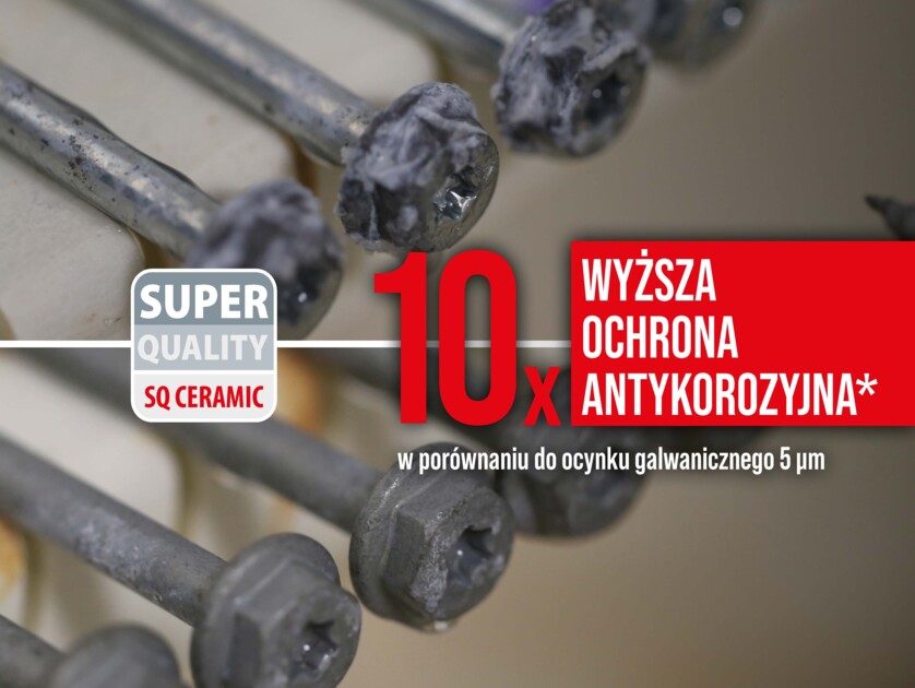 W nowoczesnych systemach mocowań coraz większą rolę odgrywają zaawansowane powłoki ochronne, takie jak SQ Ceramic. To wielowarstwowa powłoka barierowa nanoszona na powierzchnię wkrętów, której zadaniem jest nie tylko ochrona antykorozyjna, ale również ograniczenie ryzyka procesów prowadzących do kruchości wodorowej. Powłoki ceramiczne izolują stal od środowiska zewnętrznego, zmniejszają intensywność reakcji elektrochemicznych oraz ograniczają dyfuzję wodoru w głąb materiału. Dzięki temu element łączny zachowuje swoje właściwości mechaniczne przez długi czas, nawet w trudnych warunkach eksploatacyjnych. W praktyce budowlanej oznacza to znacznie wydłużoną trwałość zamocowań, szczególnie w strefach narażonych na wilgoć, oddziaływanie soli odladzających, zmienne temperatury czy wysokie nasłonecznienie. Powłoki SQ Ceramic zwiększają odporność na korozję nawet kilkukrotnie w porównaniu do standardowych zabezpieczeń cynkowych, co przekłada się bezpośrednio na bezpieczeństwo całych konstrukcji.